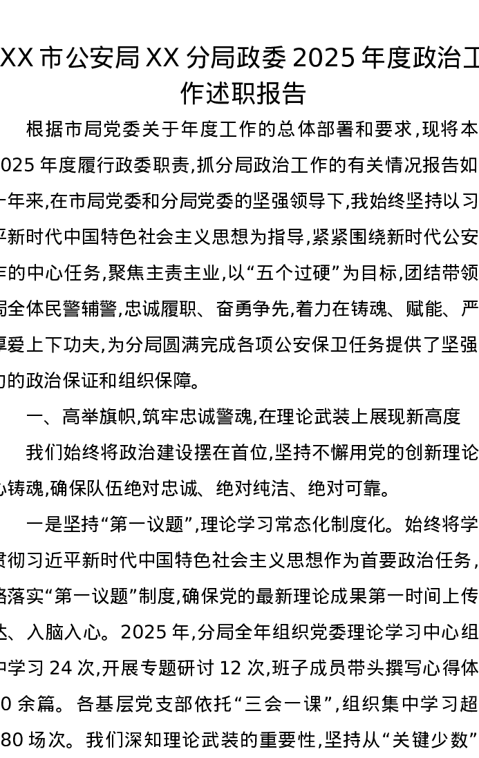 XX市公安局XX分局政委2025年度政治工作述职报告