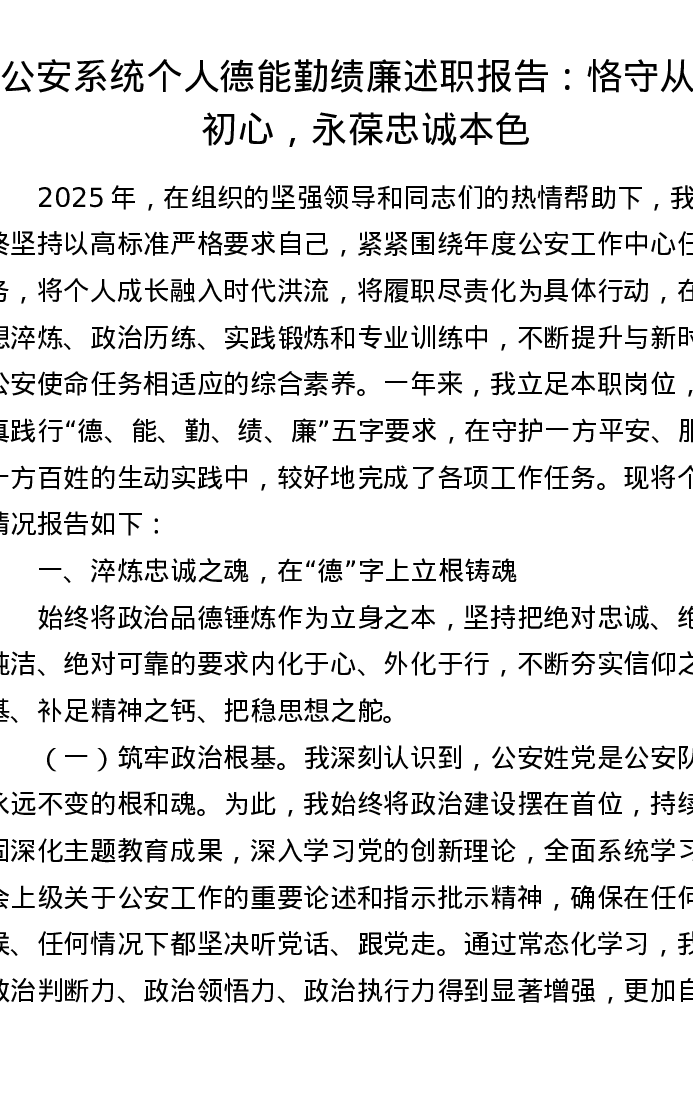 公安系统个人德能勤绩廉述职报告:恪守从警初心,永葆忠诚本色