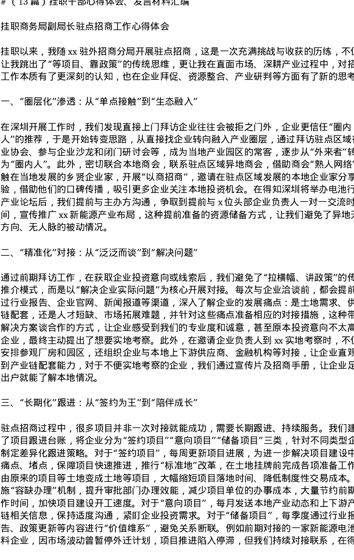 汇编:挂职干部心得体会、发言材料13篇