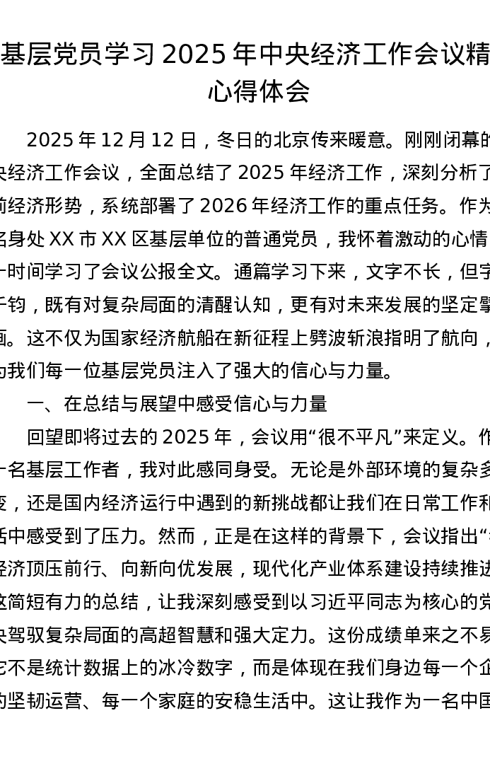 基层党员学习2025年中央经济工作会议精神心得体会
