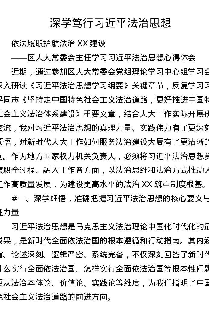 区人大常委会主任学习习近平法治思想心得体会(4519字)