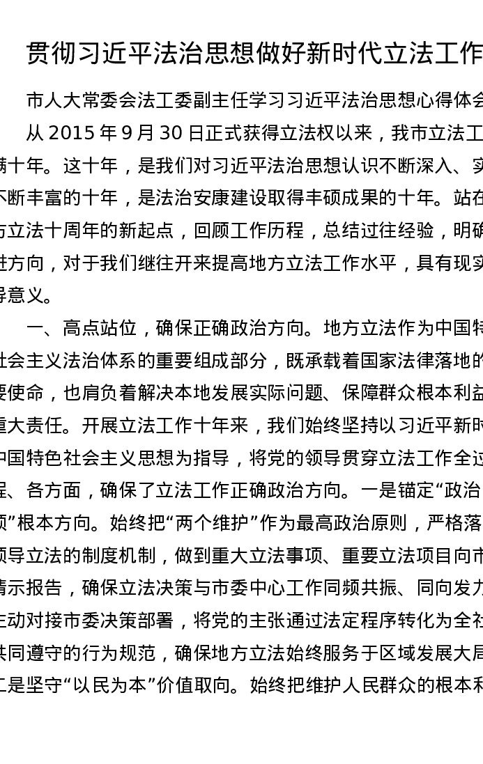 市人大常委会法工委副主任学习习近平法治思想心得体会
