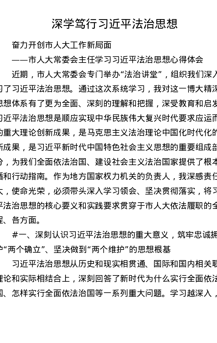 市人大常委会主任学习习近平法治思想心得体会(4451字)