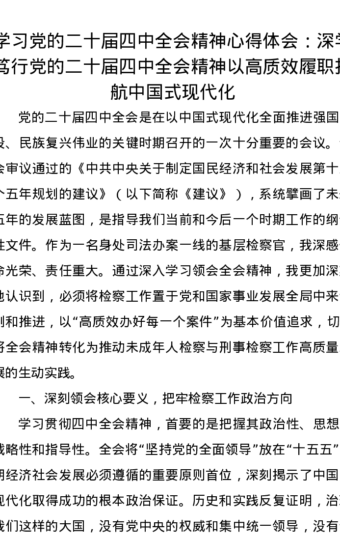 学习党的二十届四中全会精神心得体会:深学笃行党的二十届四中全会精神以高质效履职护航中国式现代化