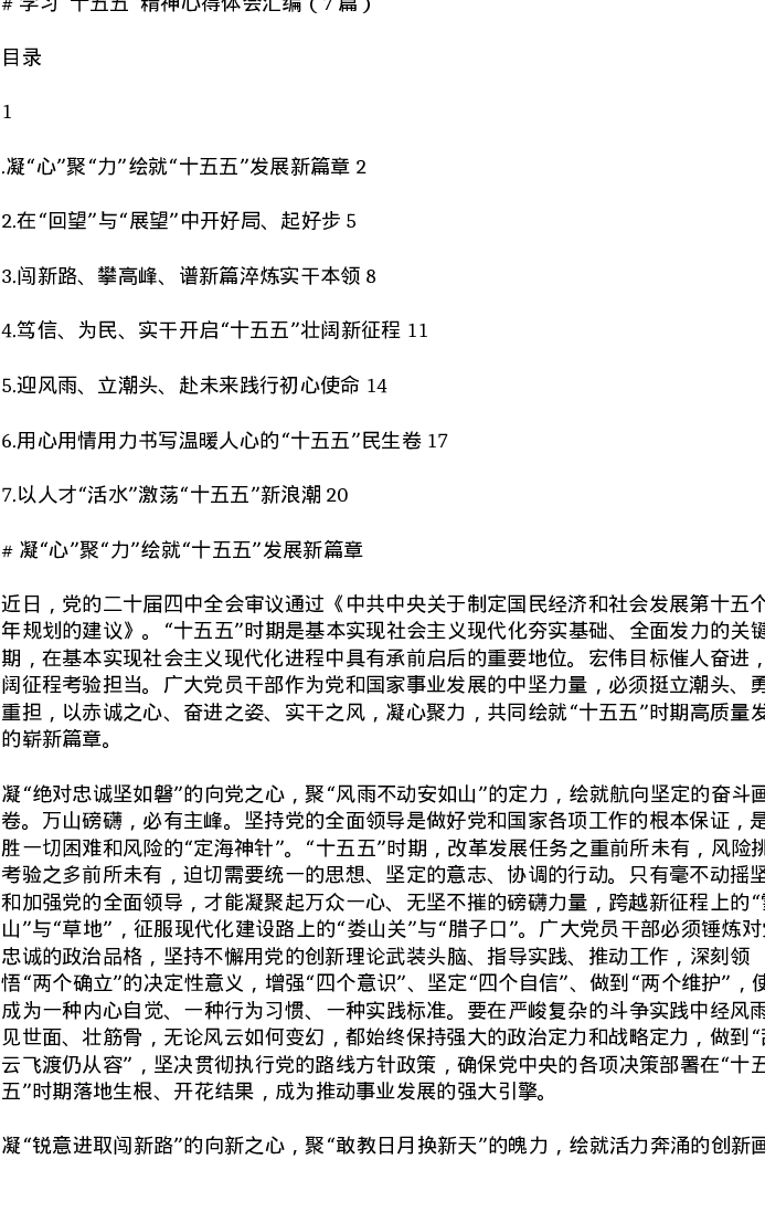 学习十五五精神心得体会汇编(7篇)