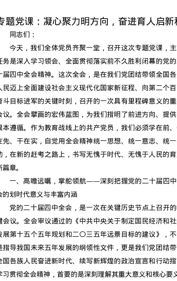 党课讲稿:凝心聚力明方向,奋进育人启新程