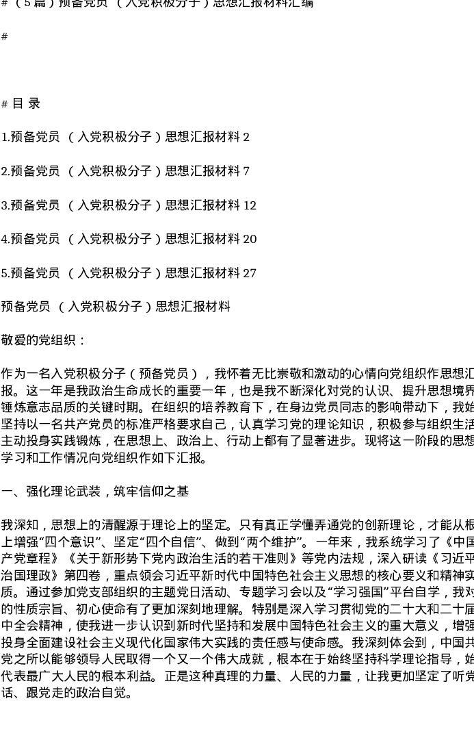 汇编:预备党员 (入党积极分子)思想汇报材料5篇