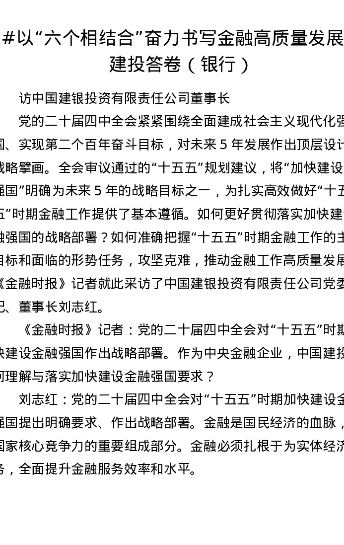 以六个相结合奋力书写金融高质量发展的建投答卷(银行)