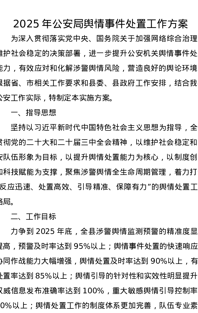 2025年公安局舆情事件处置工作方案