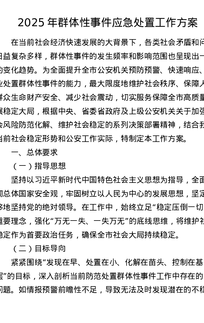 2025年群体性事件应急处置工作方案