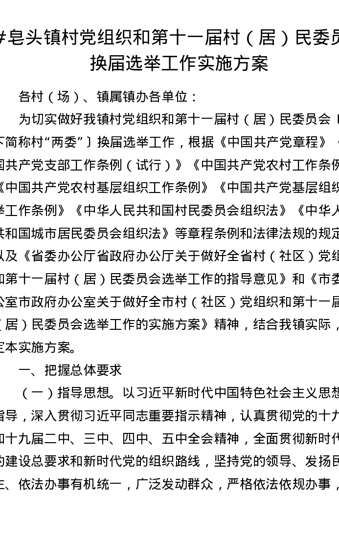 皂头镇村党组织和第十一届村(居)民委员会换届选举工作实施方案