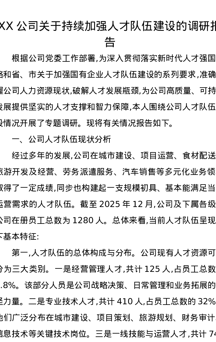 XX公司关于持续加强人才队伍建设的调研报告