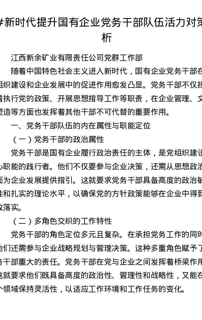 调研报告:新时代提升国有企业党务干部队伍活力对策探析