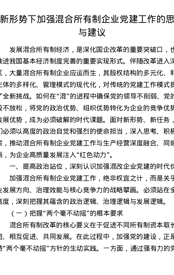 调研报告:新形势下加强混合所有制企业党建工作的思考与建议