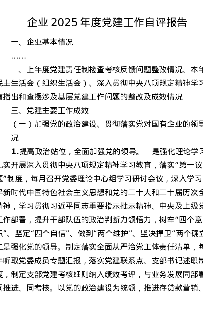 企业2025年度党建工作自评报告