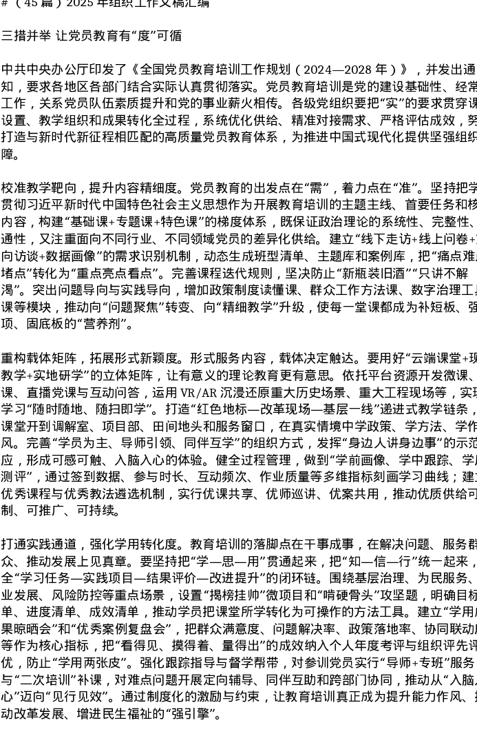 汇编:2025年组织工作文稿45篇