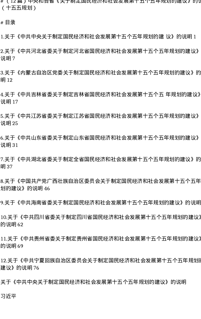 汇编:中央和各省《关于制定国民经济和社会发展第十五个五年规划的建议》的说明(十五五规划)12篇