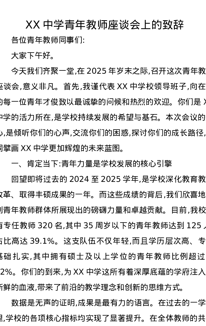 XX中学青年教师座谈会上的致辞