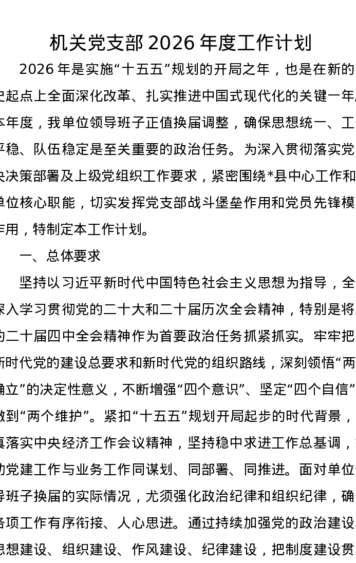 机关党支部2026年度工作计划