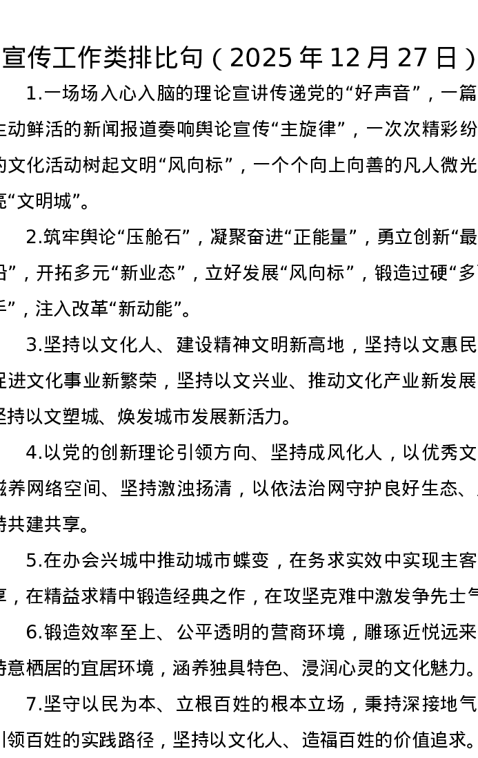 宣传工作类排比句(2025年12月27日)