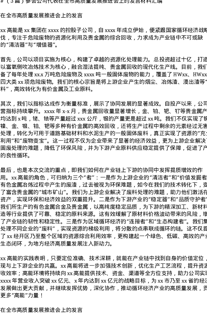 汇编:参会公司代表在全市高质量发展推进会上的发言材料3篇