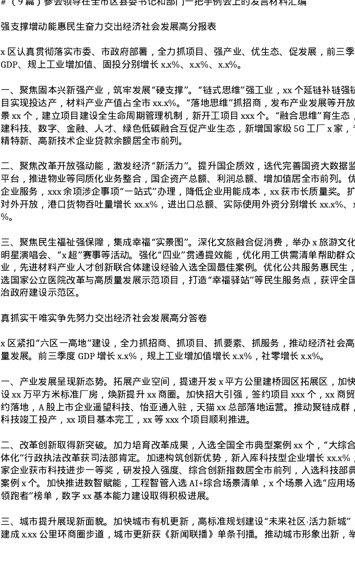 汇编:参会领导在全市区县委书记和部门一把手例会上的发言材料9篇