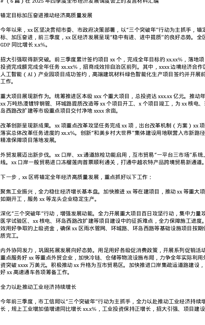 汇编:在2025年四季度全市经济发展调度会上的发言6篇