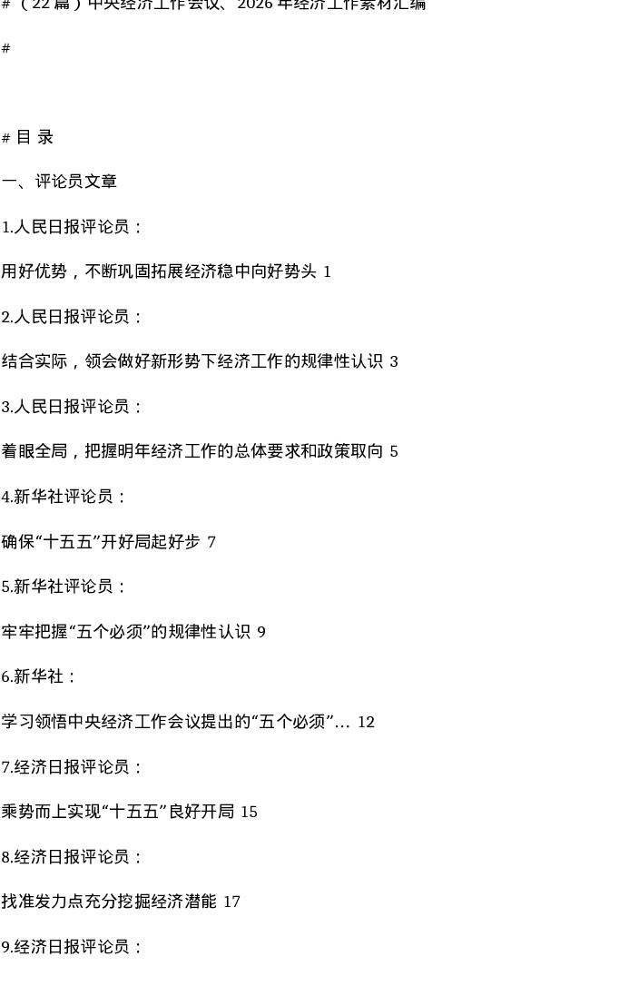 汇编:中央经济工作会议、2026年经济工作素材22篇
