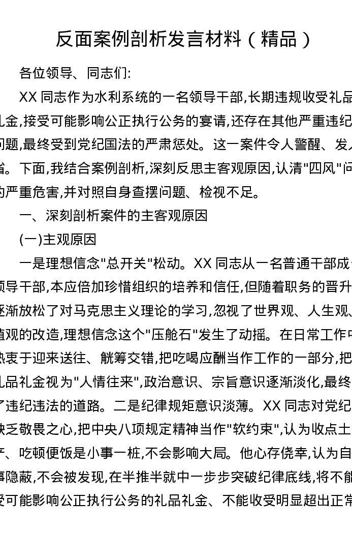 反面案例剖析发言材料