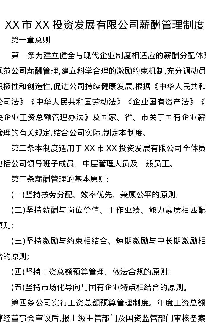 XX市XX投资发展有限公司薪酬管理制度