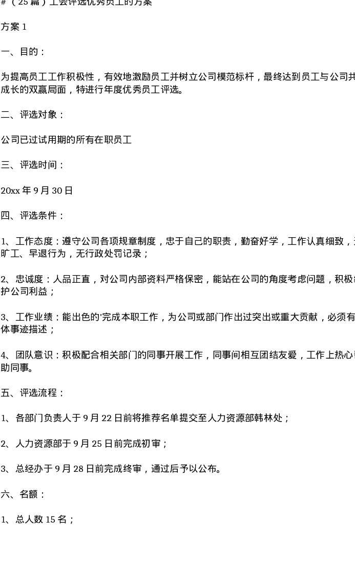 汇编:工会评选优秀员工的方案27篇