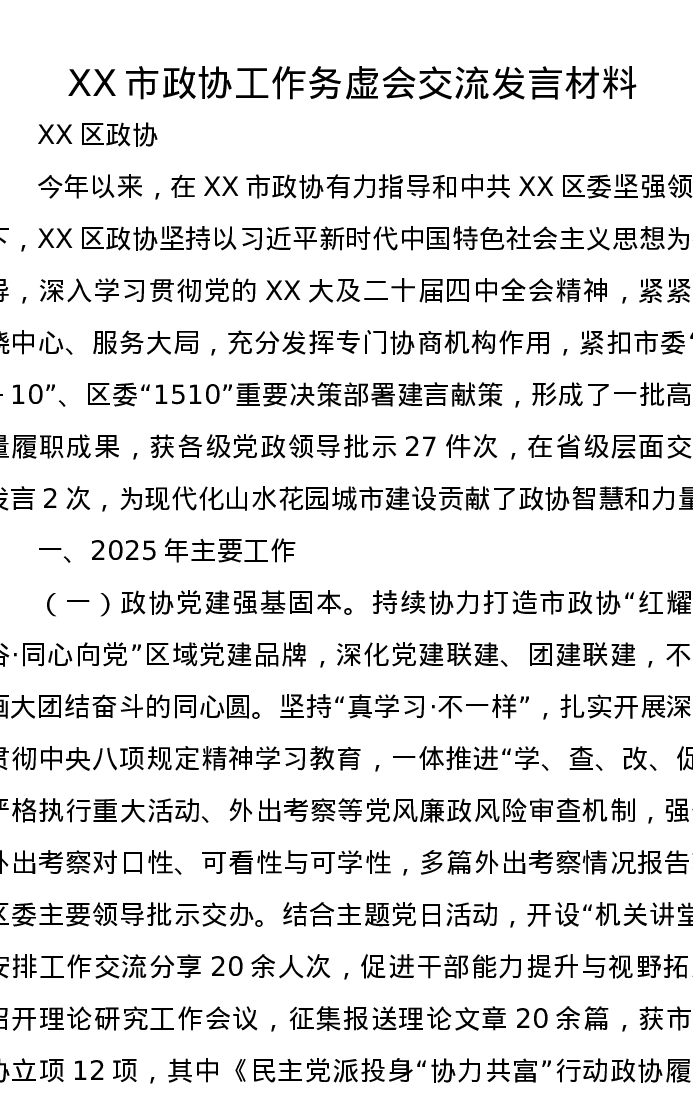 2025年XX市政协工作务虚会交流发言材料汇编9篇(政协工作总结)