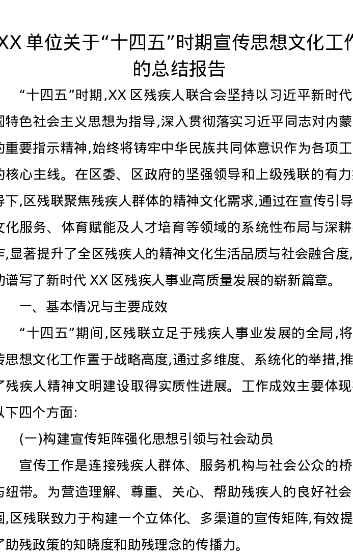 XX单位关于十四五时期宣传思想文化工作的总结报告2