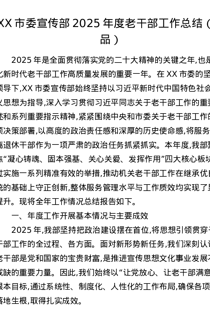 XX市委宣传部2025年度老干部工作总结