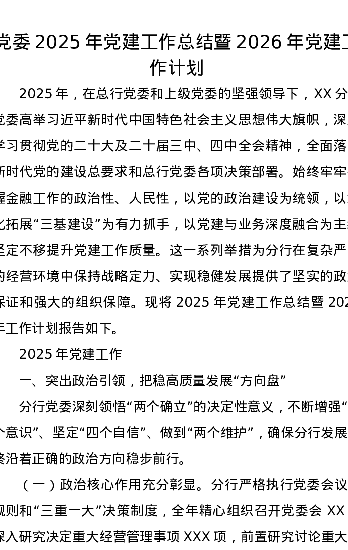 党委2025年党建工作总结暨2026年党建工作计划