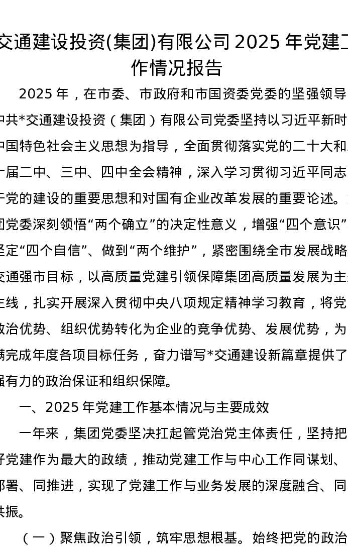 交通建设投资(集团)有限公司2025年党建工作情况报告
