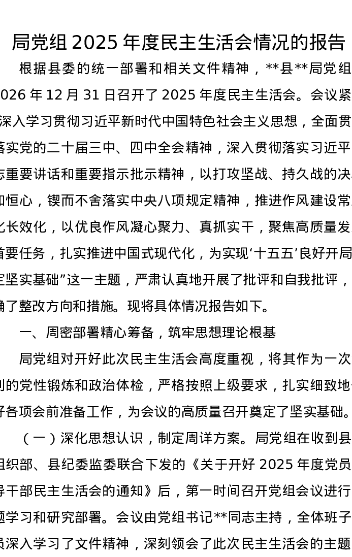 局党组2025年度xxxxx情况的报告