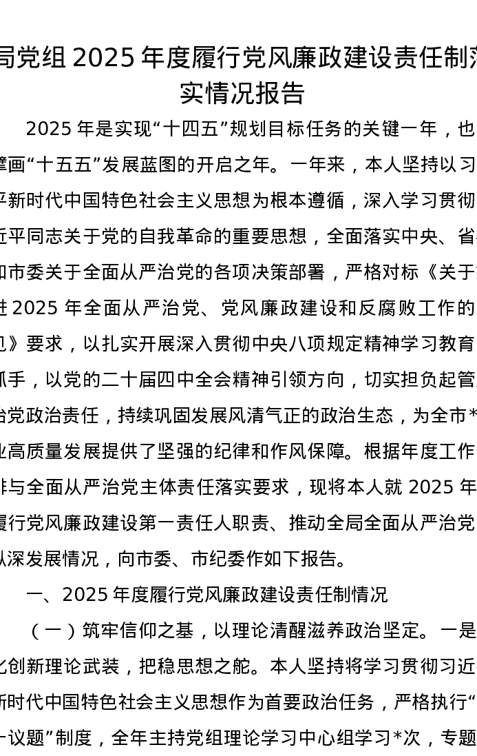 局党组2025年度履行党风廉政建设责任制落实情况报告