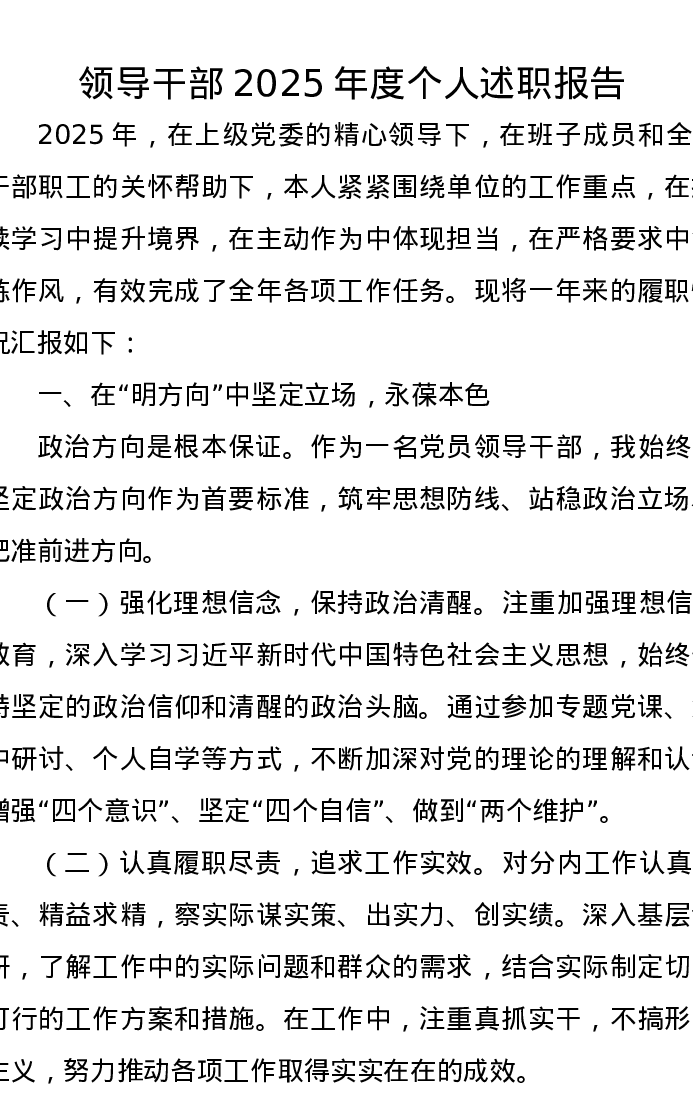 领导干部2025年度个人述职报告