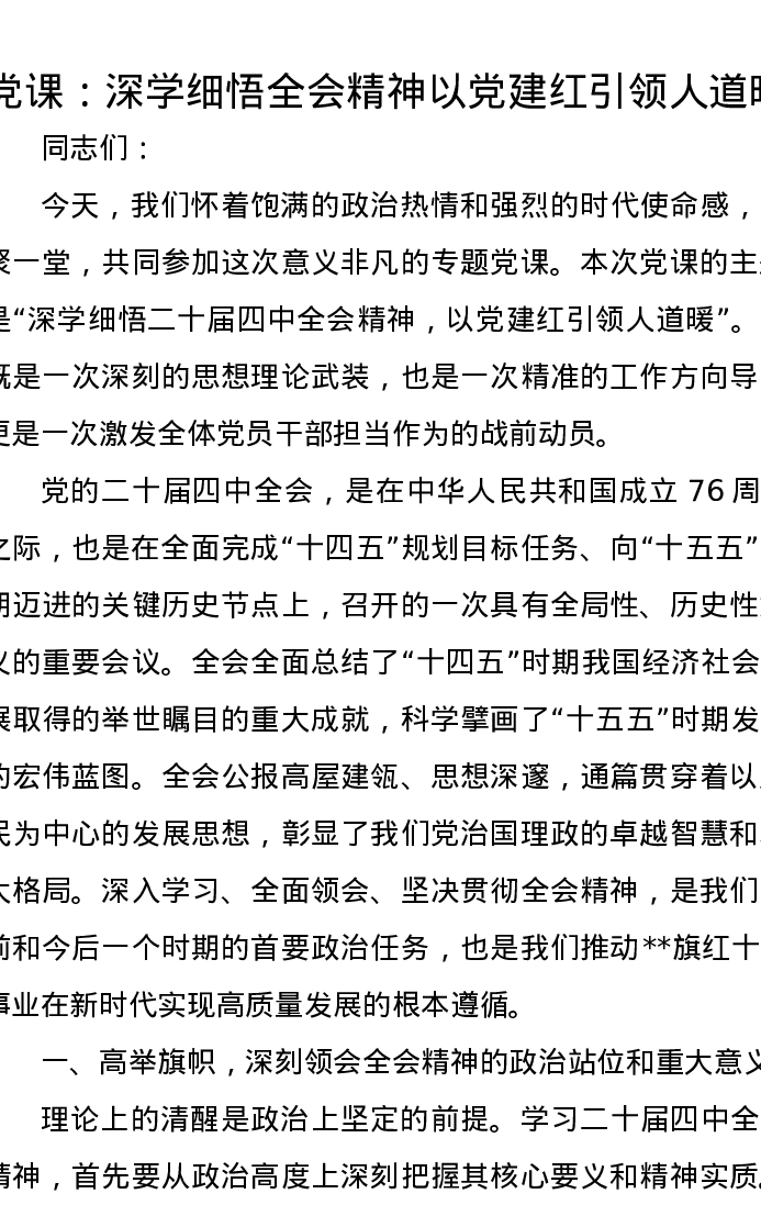 党课讲稿:深学细悟全会精神 以党建红引领人道暖