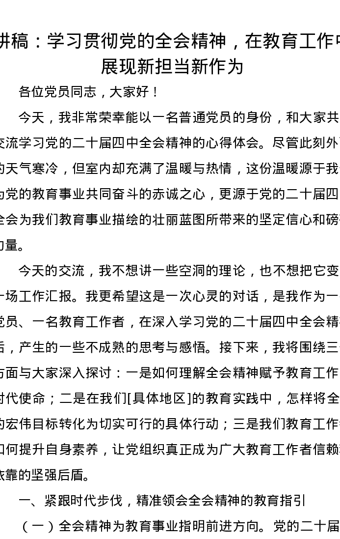 讲稿:学习贯彻党的全会精神,在教育工作中展现新担当新作为