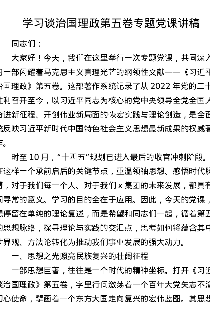 学习谈治国理政第五卷专题党课讲稿