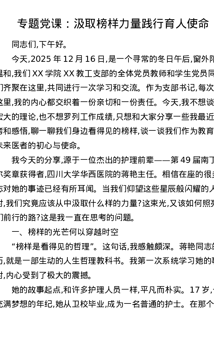 专题党课讲稿:汲取榜样力量 践行育人使命