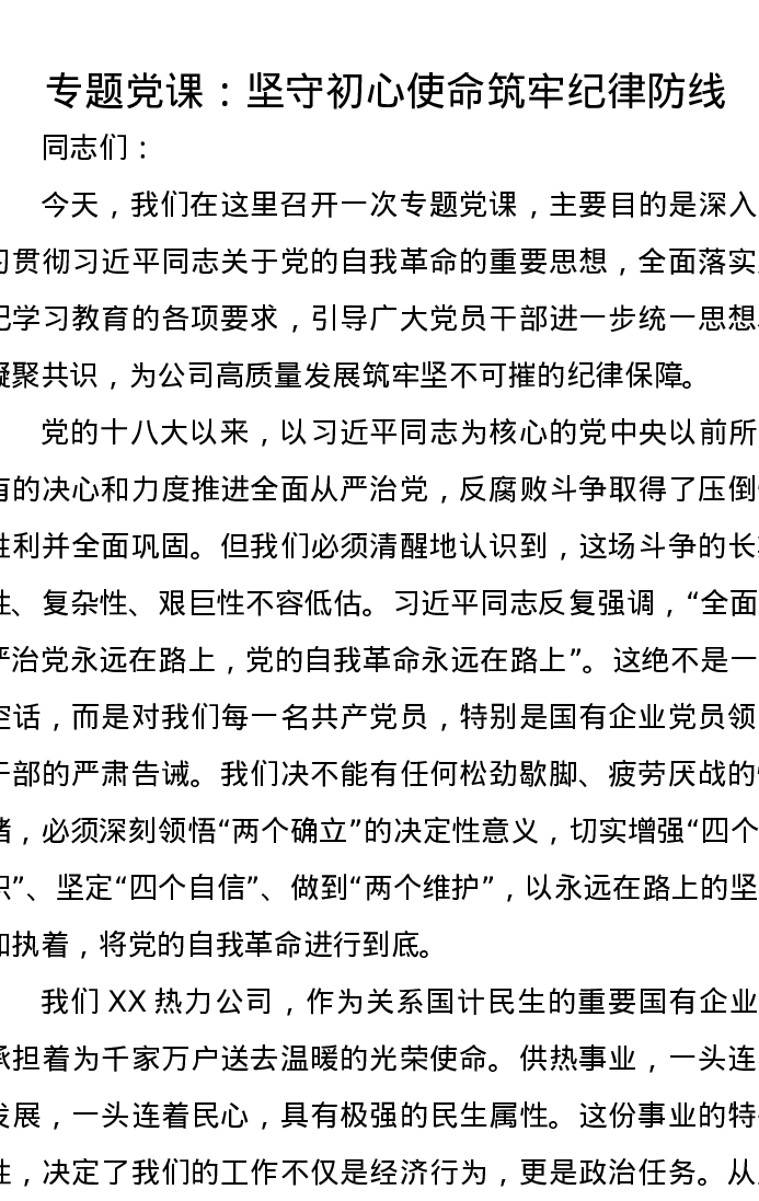 专题党课讲稿:坚守初心使命 筑牢纪律防线