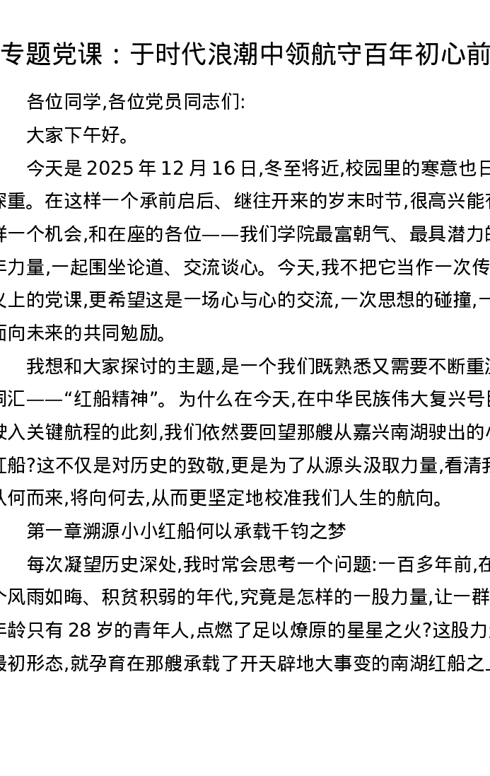 专题党课讲稿:于时代浪潮中 领航守百年初心前行