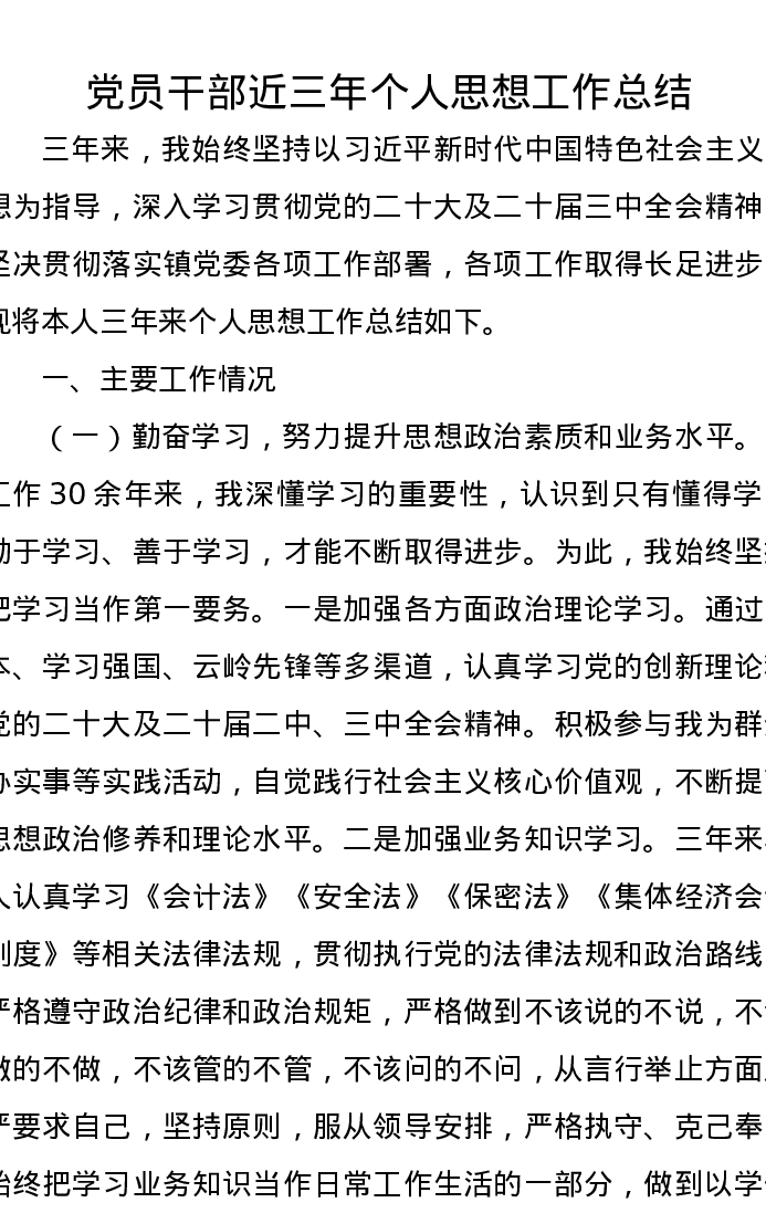 党员干部近三年个人思想工作总结