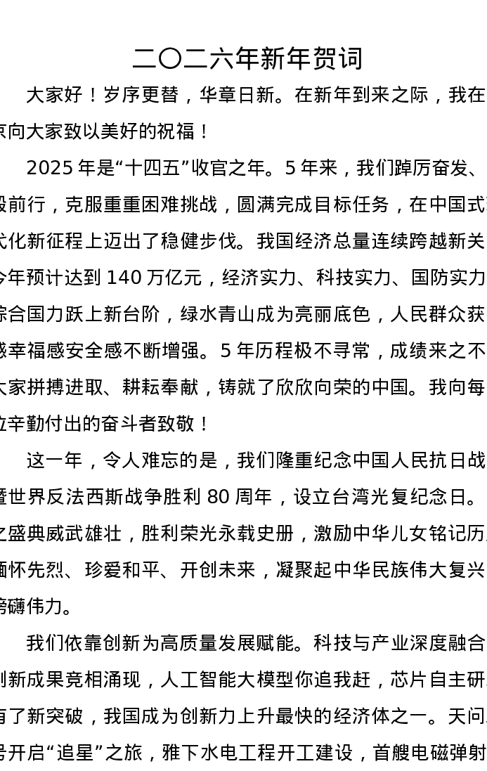 PPT:主席新年贺词2026新年贺词金句课件