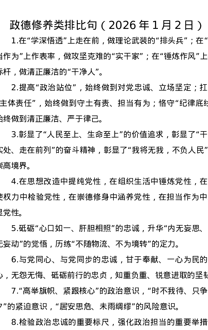 政德修养类排比句(2026年1月2日)