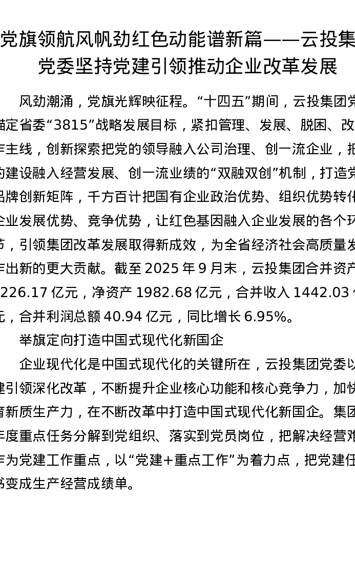 党旗领航风帆劲 红色动能谱新篇——云投集团党委坚持党建引领推动企业改革发展
