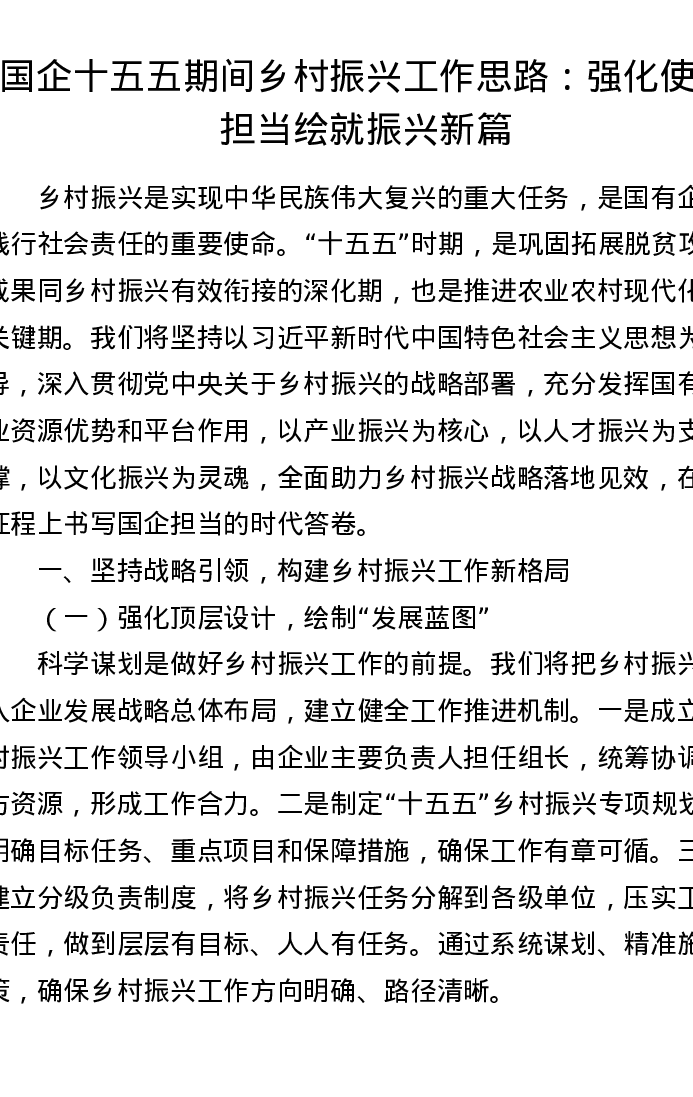 国企十五五期间乡村振兴工作思路:强化使命担当 绘就振兴新篇